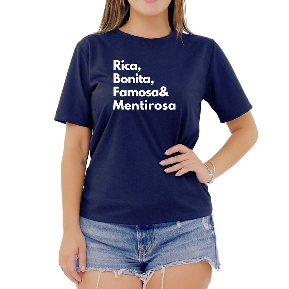 Camiseta Frase Rico Bonito Famoso Mentiroso Feminina