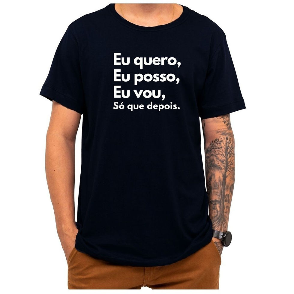 amiseta Frase Eu Quero Eu Posso Eu Vou Depois Criativa