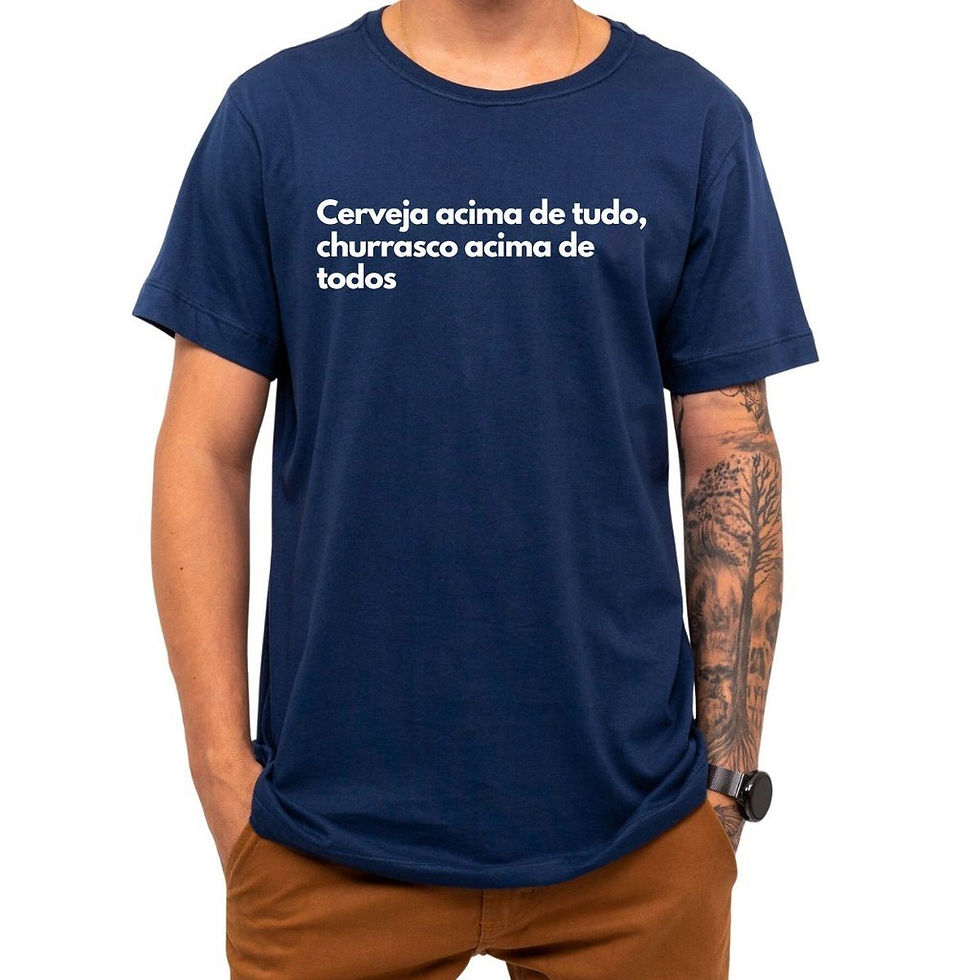 Camiseta Frase Cerveja Acima De Tudo Churrasco Acima De Todo